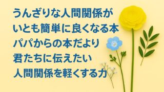 『うんざりな人間関係がいとも簡単に良くなる本』の書評です。苦手な人への距離の取り方、心がラクになる関わり方 “人間関係はスキルで良くなる” という希望をパパから子供たちにやさしく伝えます。まとめました。