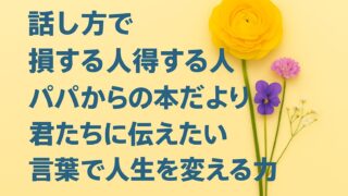 『話し方で損する人 得する人』の要点と、日常や仕事・人間関係で役立つポイントをパパ目線でやさしく解説。話し方のクセに気づき、言葉で損しない生き方を君たちへ。心が通じるコミュニケーションの本質と人生に活かすヒントがつまった一冊です。