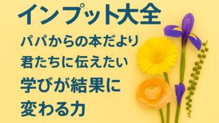 『学び効率が最大化する インプット大全』の書評です。インプットはアウトプット前提で行うことが大切。未来の自分への投資として学びを活かす方法、行動につながる習慣までパパから子供たちへやさしく解説します。