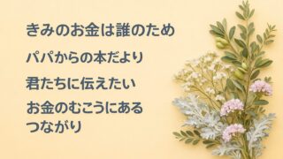 『きみのお金は誰のため』の書評。お金は目的ではなく、価値の流れを選ぶ道具。「お金のむこうにある人とのつながり」をパパから子どもたちへやさしく伝えます。