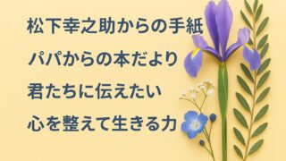 『松下幸之助からの手紙』の書評です。人生や仕事に迷ったときに心を整えるヒントをくれる一冊。素直さ・感謝・信頼の心を持って自分の道を歩む大切さを、パパから子どもたちにやさしく伝えます。