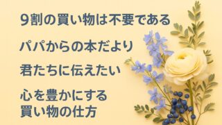 『9割の買い物は不要である』の書評です。安さやセールに流されず、本当に満足を生む1割の買い物を選ぶ力を解説します。心理に流されない買い方や、心まで豊かになる買い物の仕方をパパから子どもたちへやさしく伝えます。