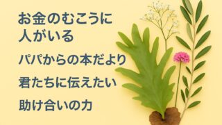『お金のむこうに人がいる』の書評です。お金は数字ではなく、人の働きと助け合いの力で価値が生まれる。働くこと・支払うこと・貯金や投資・税金の意味を優しくとらえ直し、豊かな人生の考え方をパパから子供たちへやさしく伝えます。