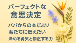 『パーフェクトな意思決定』の書評です。完璧な正解を探すより、責任を持って決め、必要なら修正する力が大切。「決める勇気」と「未来を選び取る思考」をパパから子どもたちにやさしく伝えます。