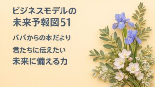 『ビジネスモデルの未来予報図51』の書評です。テクノロジーの進化が仕事や社会をどう変えるのか、未来を「当てる」のではなく「備える」力を、パパから子どもたちへやさしく伝えます。