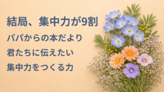 学びを続ける力 『結局、集中力が9割』要約・感想|“集中力をつくる力”【パパからの本だより】 『結局、集中力が9割』の要約と感想です。集中力は才能ではなく、脳の8つの働きと環境・習慣で高められる力です。「集中できない理由」と「集中力をつくる方法」を、パパから子供たちへやさしく伝えます。 2026.03.21 学びを続ける力
